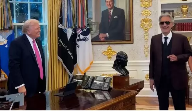 La asistente especial de Trump, Margo Martin, compartió en la red social X imágenes del encuentro, en las que se ve a Trum disfrutando de la interpretación de Bocelli mientras ambos permanecen sentados frente a frente en el Resolute Desk, el emblemático escritorio presidencial.
