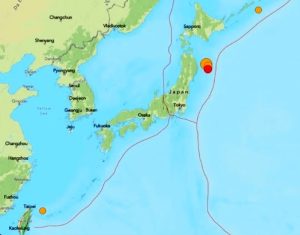 Un sismo de magnitud 7,7 se registró frente a la costa de Hokkaido, cerca de la ciudad costera de Aomori, con un centro a unas 30 millas bajo la superficie del mar de momento no se han reportado víctimas o daños importantes