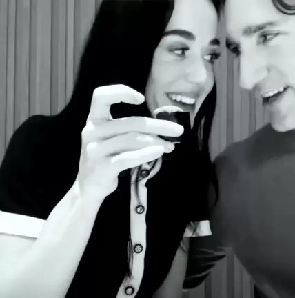 Perry y Trudeau se muestran muy cariñosos, posando mejilla con mejilla para una selfie al aire libre.