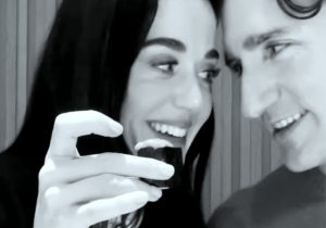 Perry y Trudeau se muestran muy cariñosos, posando mejilla con mejilla para una selfie al aire libre.