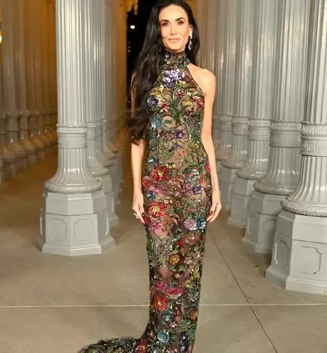 Demi Moore: Llevó un vestido columna de Gucci con bordados florales multicolores.