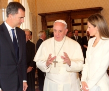 Su Santidad el Papa recibió a Sus Majestades los Reyes en la Biblioteca Privada del Vaticano, donde mantuvieron un encuentro. A su término, el Papa recibió al resto de la delegación española.