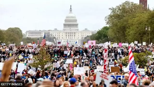 Las manifestaciones, a las que acudieron casi siete millones de personas según los organizadores, fueron convocadas de forma simultánea en más de 2.500 ciudades y municipios de los 50 estados del país con el objetivo de convertirse en la mayor protesta desde el regreso de Trump al poder el pasado enero.