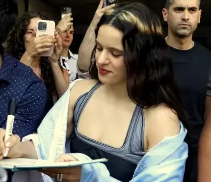 Este viernes, Rosalía asistió al canal de streaming Luzu, en el barrio porteño de Palermo, donde la recibió una horda de fanáticos, a los que les firmó autógrafos con una sonrisa y buena disposición.